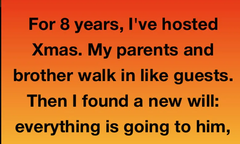 The next morning, my mother arrived with a revised will dividing everything equally, along with a letter admitting they had taken me for granted. That Christmas wasn’t at my house, and it was imperfect—but peaceful. Now, they ask instead of assume, and I show up without carrying the entire holiday on my back. The real lesson wasn’t about money; it was about boundaries, value, and finally being seen.