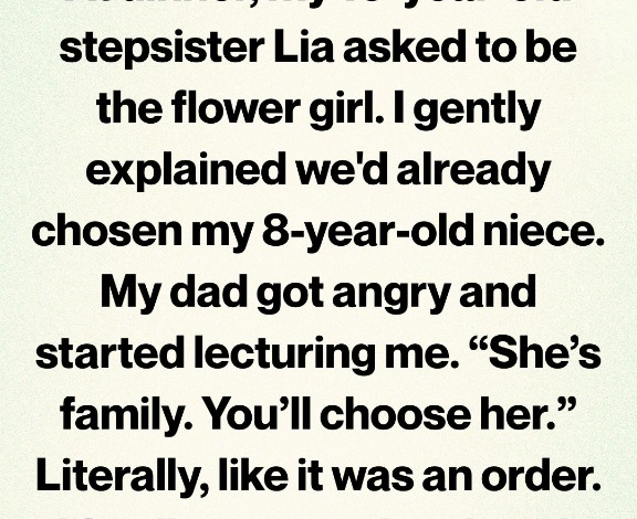 The next day, my phone rang. My dad didn’t waste time. He was angry—sharp, clipped, already lecturing me about “being insensitive” and “hurting a child’s feelings.” I tried to explain again, calmly, that Lia was never promised anything, that this wasn’t a last-minute decision, that my niece had been chosen months ago.